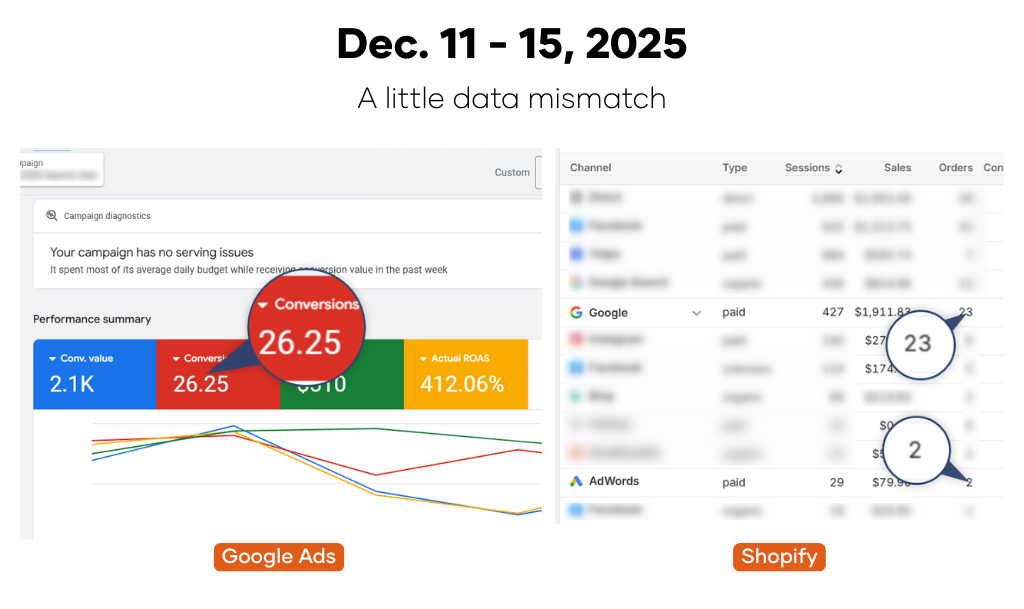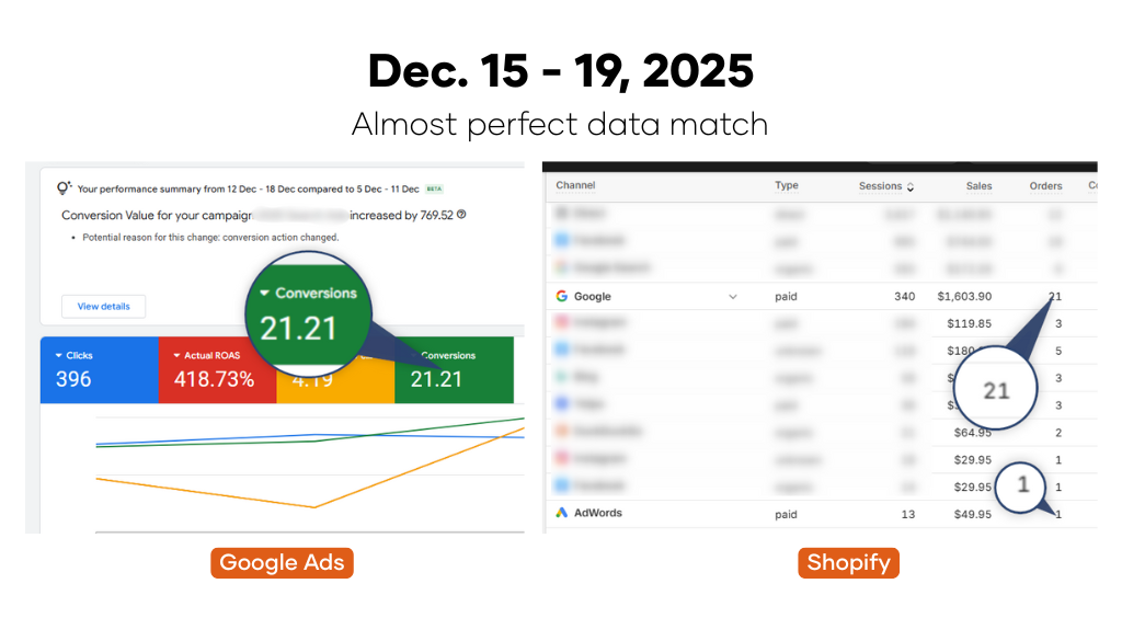 Yes, there are days when Shopify and Google Ads match perfectly.